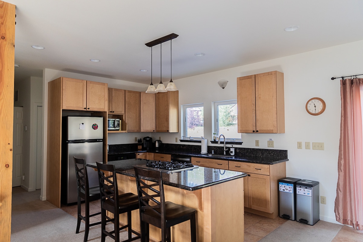 Casa renovada de 5 quartos e 2 banheiros na montanha! Permitido até 10 hóspedes, além de crianças extras de 5 anos ou menos, tornando-a uma ótima casa para grupos familiares e amigos múltiplos e maiores. As crianças adoram a mesa de bilhar da sala de jogos, o Xbox e os beliches, e a cozinha está equipada para preparar e desfrutar de uma refeição de férias. Quintal paisagístico e cercado com área de pátio e assentos, banheira de hidromassagem, churrasqueira com propano extra e muito espaço para se espalhar. Aceita animais de estimação e curta caminhada até um belo prado/caminhadas.