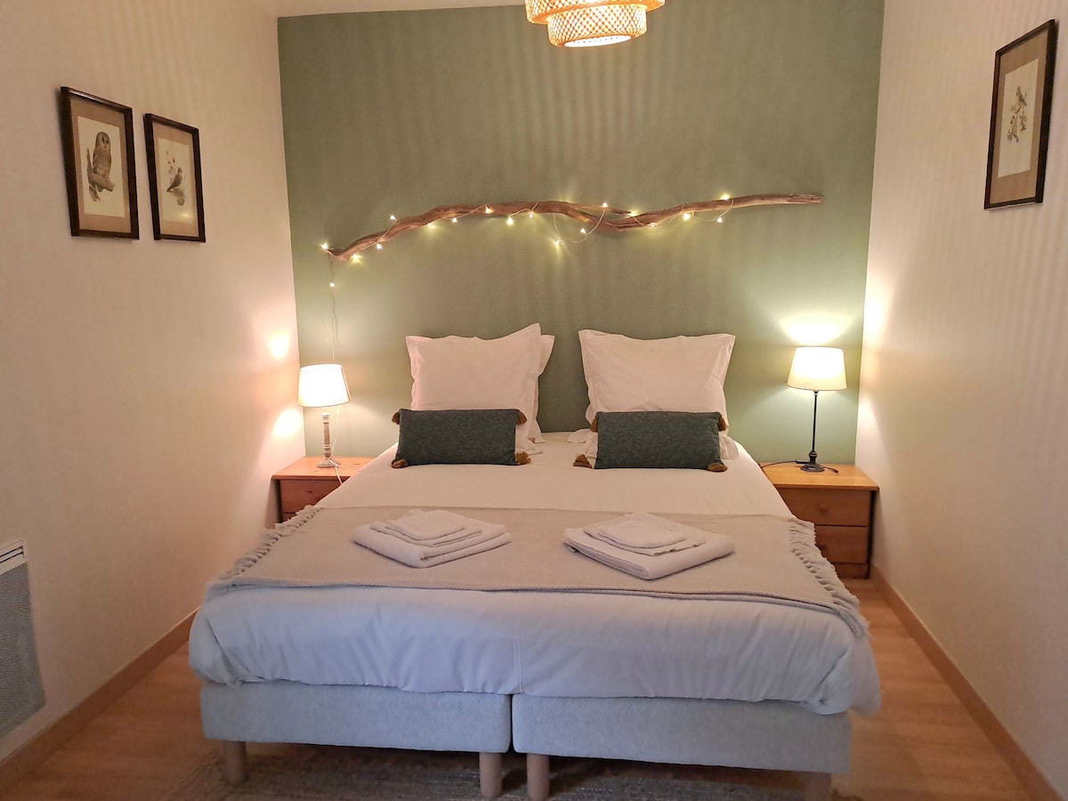 Ideal para famílias, a casa pode acomodar 4 pessoas. No andar térreo: cozinha equipada (fogão vitrocerâmico, forno, micro-ondas, máquina de lavar roupa, máquina de lavar louça, fogão a lenha. No andar de cima: TV, banheiro (chuveiro, pia, toalheiro elétrico, vaso sanitário). Aquecimento elétrico incluído Dormitório: um quarto (uma cama de 140 x 190 cm e uma cama retrátil de 2 lugares). Roupa de cama e toalhas não fornecidas A limpeza de final de estadia deve ser a ser realizada por você.