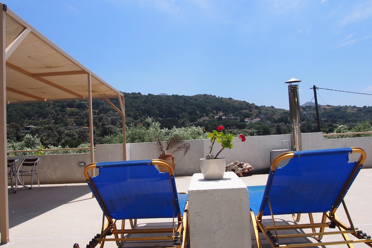 Great for walkers and animal lovers, this accommodation is part of a former "Kafenion", situated in the heart of a traditional Cretan village in the hills. Nearby is the pretty and bustling town of Spili, with its tavernas, shops, pharmacy, health centre and post office. Prices from €35 (spring and autumn) to €40 including a basic breakfast. The WiFi only works outside. Loving dogs and cats is essential, if you wish to stay here, as I have 4 dogs and several cats. . Having a car is essential.