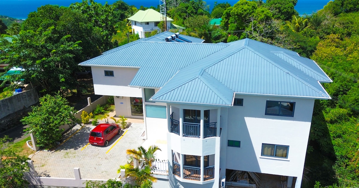 Belo, simples e aconchegante apartamento auto-suficiente com ótima vista para o mar - cozinha em plano aberto/área de estar e dormir com banheiro separado e grande terraço. Está localizado perto da deslumbrante praia de Anse Royale, no sudeste de Mahe, Seychelles, acomoda 3 pessoas. Edifício estilo ilha - portas de terraço totalmente abertas, portas e janelas de madeira, tetos altos, ventilação natural e ar condicionado. O apartamento está equipado com tudo o que você precisa durante sua estadia. Não há serviço de limpeza diário ou troca de toalha.