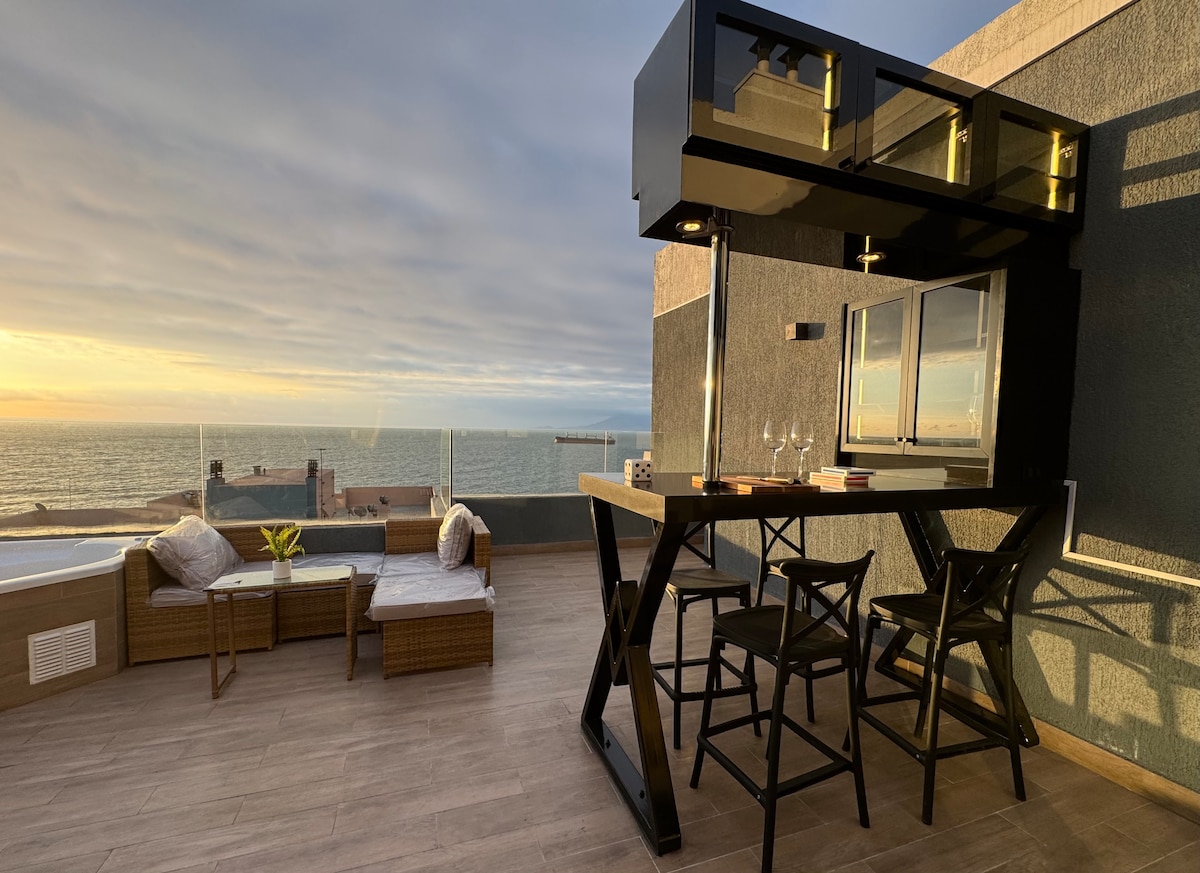 Viva a experiência de uma cobertura à beira-mar em Antofagasta. Dois andares de conforto e estilo com jacuzzi privativa, quincho e espaços modernos cheios de luz natural. Ideal para relaxar, desfrutar de entardeceres únicos e se conectar com o som do oceano. Perfeito para escapadas tranquilas com charme costeiro. Localizado em uma área residencial costeira com excelente conectividade, ambiente tranquilo, perto de spa, supermercados, farmácias, cafés, bares e outros.