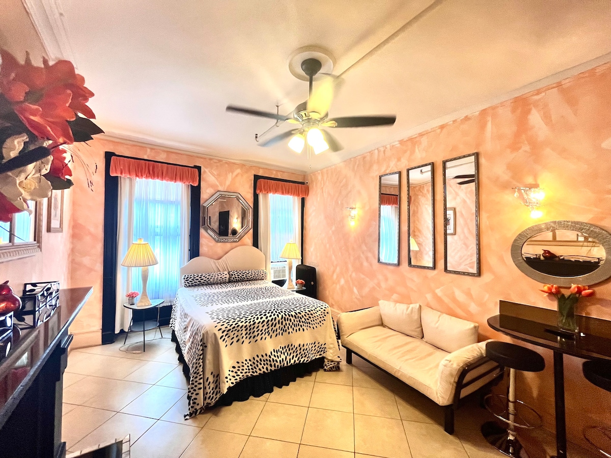 Sinta-se em casa neste loft iluminado e privado com tetos altos, a poucos passos do Central Park e do Museu da Cidade de Nova York. Desfrute de duas camas queen confortáveis, um sofá que pode ser aberto para uma cama de solteiro, uma cozinha compacta e um banheiro completo limpo. O espaço aberto em estilo galeria está cheio de luz e charme — um lugar tranquilo para relaxar depois de explorar a cidade localizado no primeiro andar do edifício