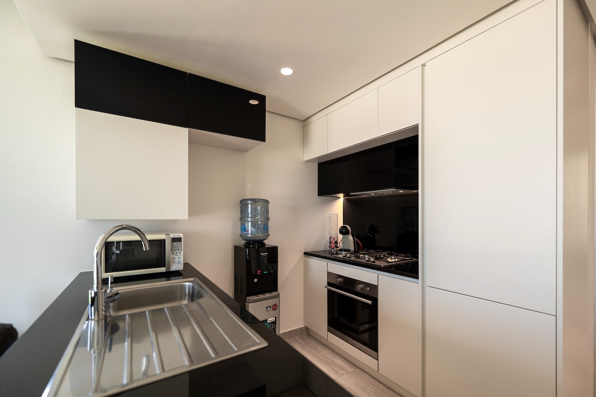 Bem-vindo ao seu paraíso à beira-mar! Este elegante apartamento de um quarto oferece vistas deslumbrantes para o mar e acesso exclusivo à praia. Desfrute de um café da manhã na varanda, cozinhe em uma cozinha totalmente equipada e relaxe em uma área de estar aconchegante. Perfeito para casais e viajantes solitários que procuram uma escapadela tranquila. No coração de Ayla, ao lado da B12, com suas vibrações divertidas, música e atividades. Faça uma curta caminhada até a Marina Village e aproveite a comida e a vida noturna ou jogue uma partida de golfe. Acomoda 4 pessoas com um sofá-cama queen size.