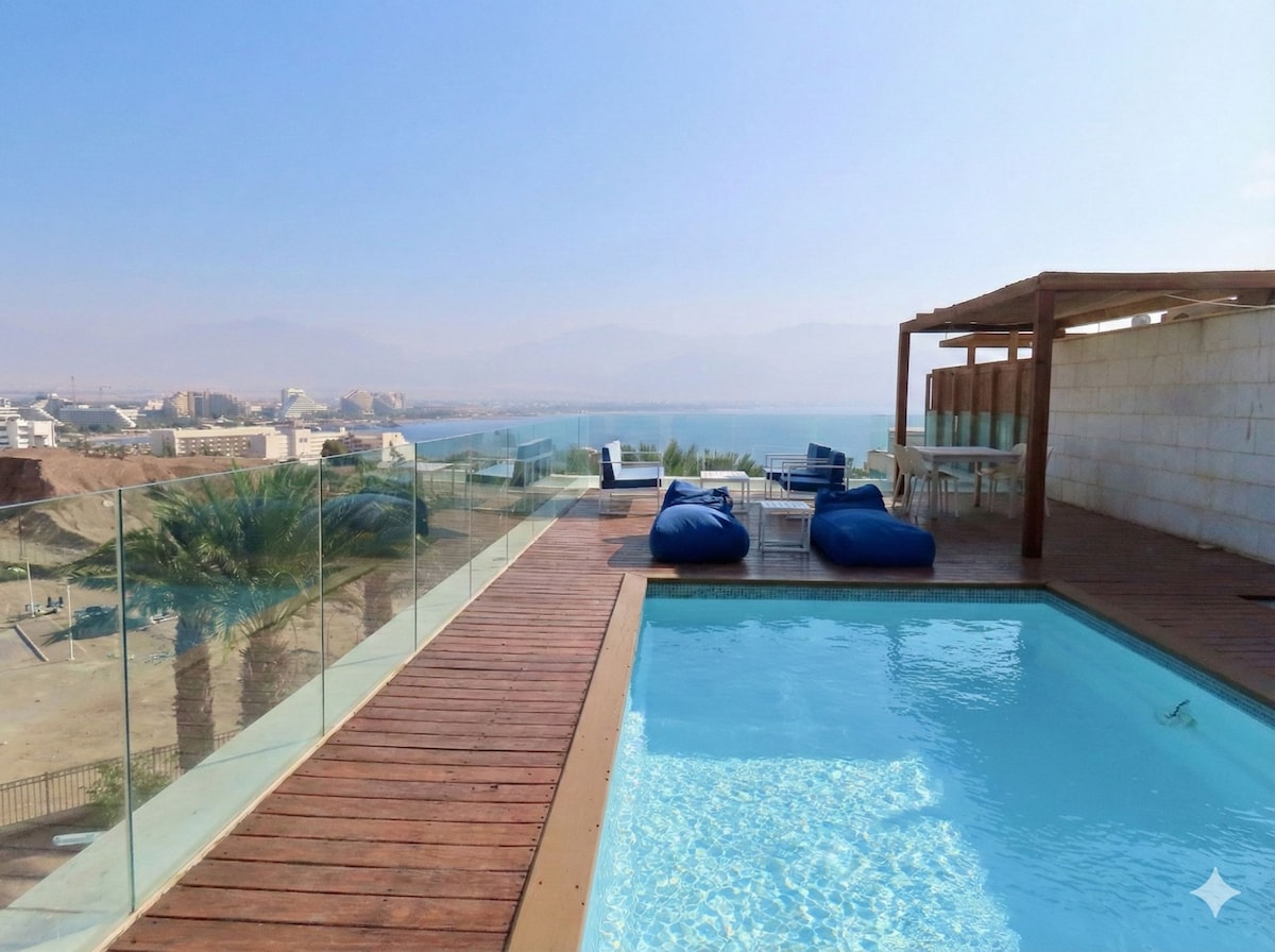 A luxurious garden apartment with a private entrance located on the top of the mountain between the Red Sea and the mountains of Eilat which gives vacationers a huge experience of vacationing in a luxurious fragrance alongside a breathtaking view