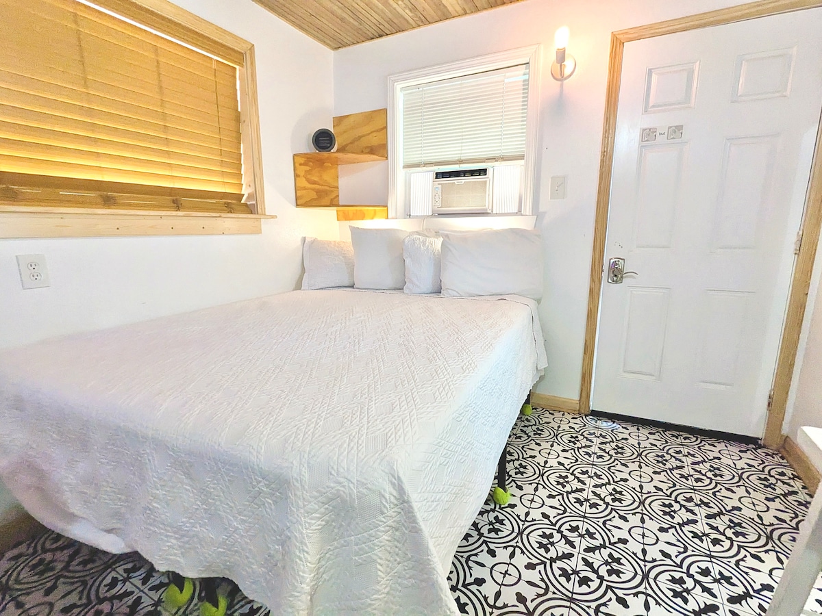 O quarto da Clementine é um refúgio encantador em Mid City na Bayou St. John. É simplesmente um quarto/banheiro com chuveiro de azulejos, máquina de lavar/secar e cama king size. A porta fica ao lado de um gazebo para passar o tempo ao ar livre e a mesa pode ser organizada para 2 pessoas jantarem dentro. Há uma grande TV Roku para streaming de programas, um frigobar, micro-ondas, chaleira elétrica e funil de café para fazer café ou chá da manhã, e pratos e talheres para aquecer um lanche. Além disso, ele pode ser combinado com a nossa Sweet Suite para reserva familiar de 2 camas/2 banheiros