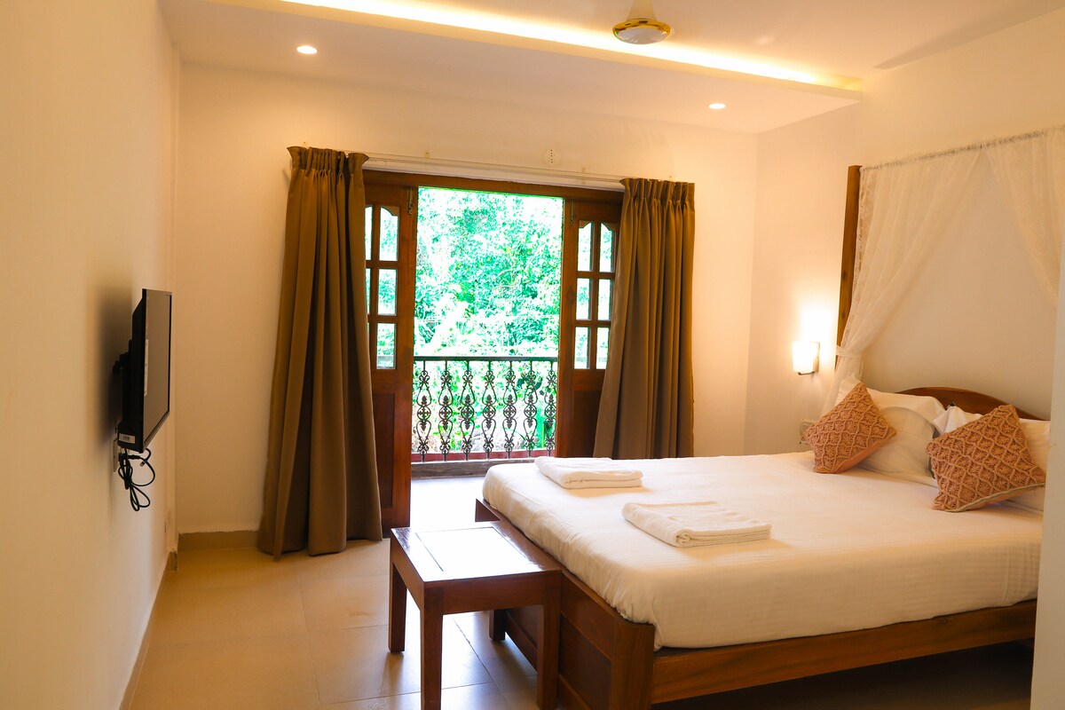 Riverside Deluxe Stay w Balcony Pool Morjim Beach