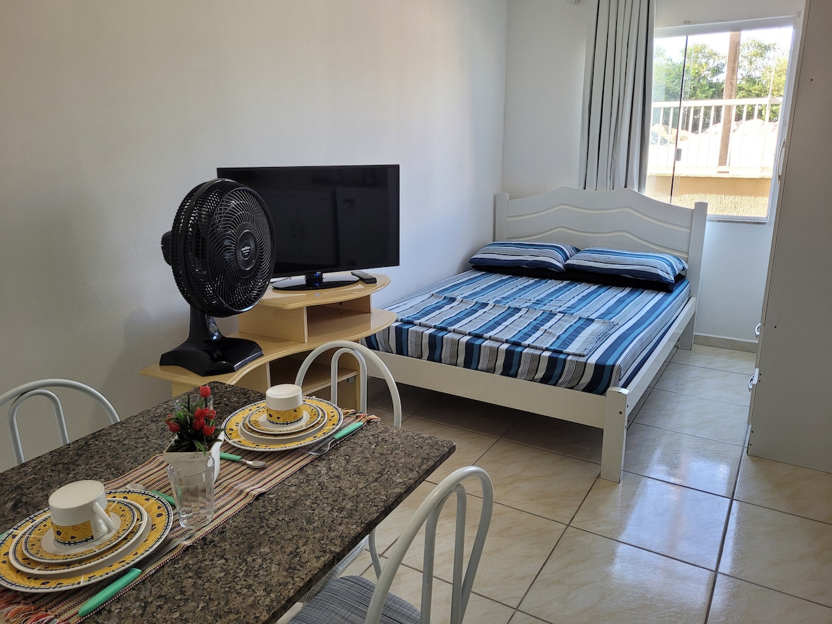 Studio completo, moderno e elegante, ideal para trabalho ou lazer. O espaço conta com cama confortável, ar-condicionado, TV, cozinha equipada com utensílios essenciais e banheiro privativo e garagem. Ambiente limpo, funcional e preparado para oferecer uma estadia prática e aconchegante. Localizado no centro de Araquari, ao lado da BR-280, com fácil acesso às principais vias, comércios e serviços da região. Perfeito para quem busca conforto, mobilidade e excelente custo-benefício.