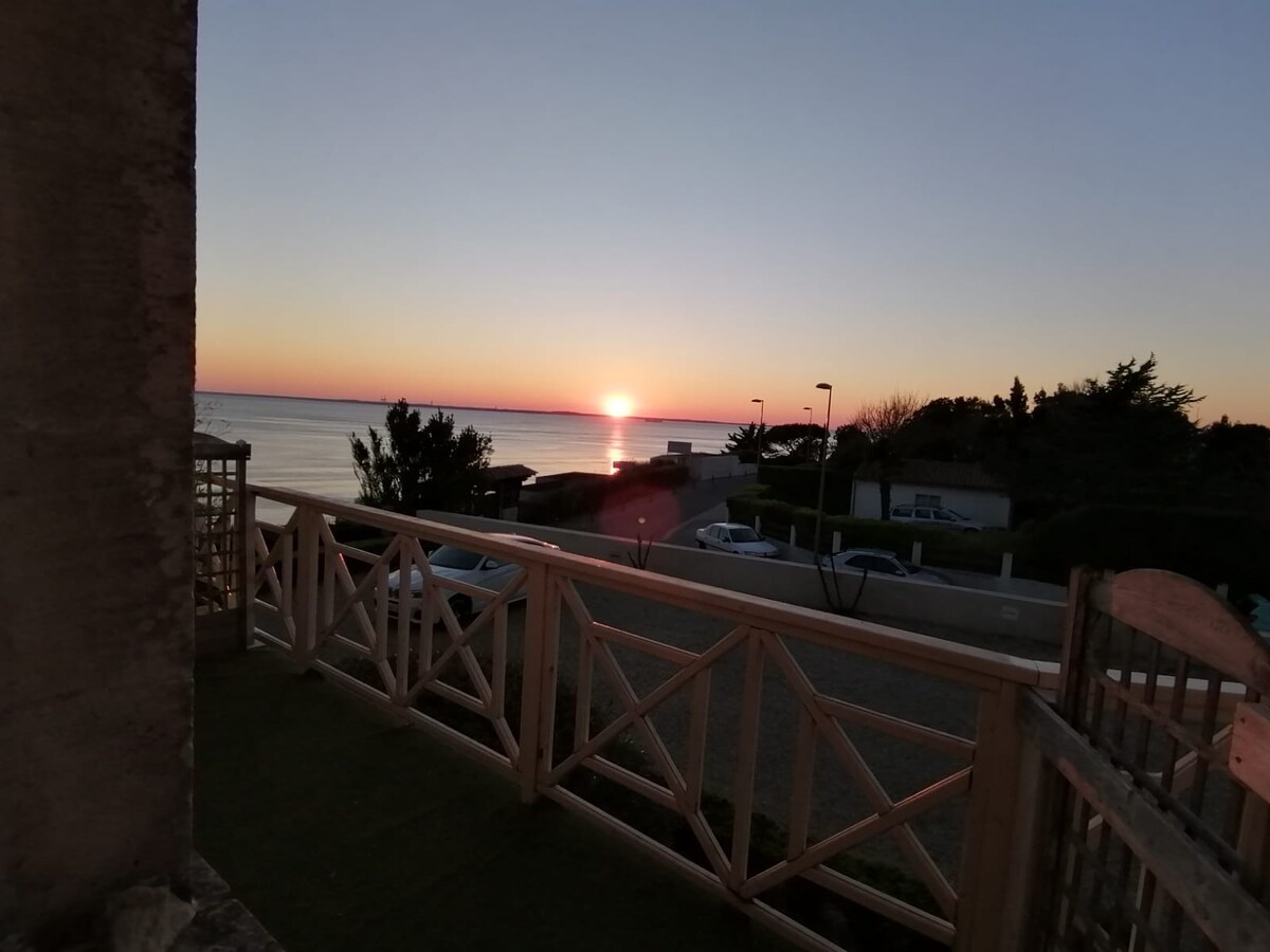 Saint Palais — Varanda com vista para o mar e praia de Nauzan