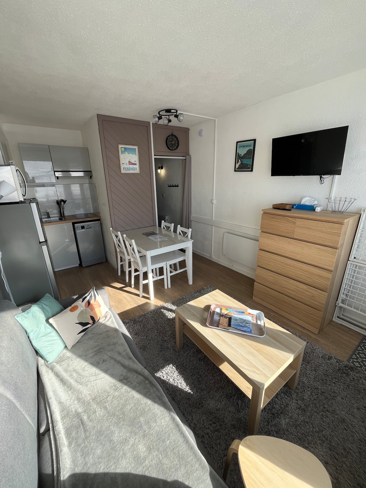 Apartamento com varanda com vista para as encostas. Acesso direto ao shopping, às encostas de elevador, tudo está a pé. Verão renovado 2024. Ideal para 2 adultos + 2 jovens. Localizado no 2º andar Res Pescamou. Agradável sala de estar com cozinha equipada, geladeira congelador, máquina de lavar louça, forno de micro-ondas combinado, fogões de indução, cafeteira Dolce Gusto + filtro, máquina de raclette...TV, sofá-cama 140x190 + 2 beliches 90. Cobertor, edredons e travesseiros fornecidos. Armazenamento de esqui