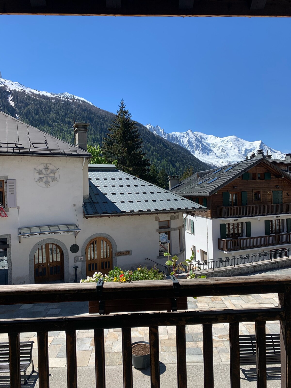 No coração da aldeia, na praça da aldeia, orientação sul, vista sublime dos grandes Montets ao Mont Blanc, grande varanda florida, em uma casa de família histórica de prata, no primeiro andar (condomínio de 4 apartamentos) T2, totalmente renovado, aconchegante, muito perto de todas as comodidades (lojas...) 1 sala de estar espaçosa + cozinha americana, 1 quarto com duas camas de solteiro (separáveis ou juntas), 1 banheiro (chuveiro), 1 adega com espaço para guardar esquis, bicicletas e secador de botas