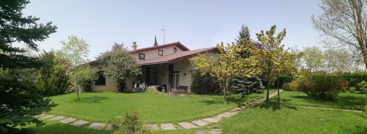 Casa de campo com um grande jardim e piscina