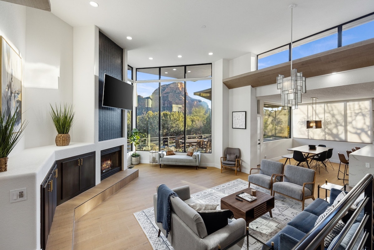 Divirta-se com toda a família nesta localização moderna de Sedona de meados do século, recentemente renovada. Inspirado pelo arquiteto americano Frank Lloyd Wright. Esta propriedade fica a menos de três quilômetros de Tlaquepaque e Uptown! A uma curta distância a pé do local gratuito e ecológico do Sedona Shuttle, que leva você a muitos destinos de trilhas para caminhadas. Vistas incríveis desta casa de luxo. Para qualquer época do ano, desfrute de jogos ao ar livre, um mergulho na banheira de hidromassagem, noite perto do fogo ou jogos como bocha e cornhole!