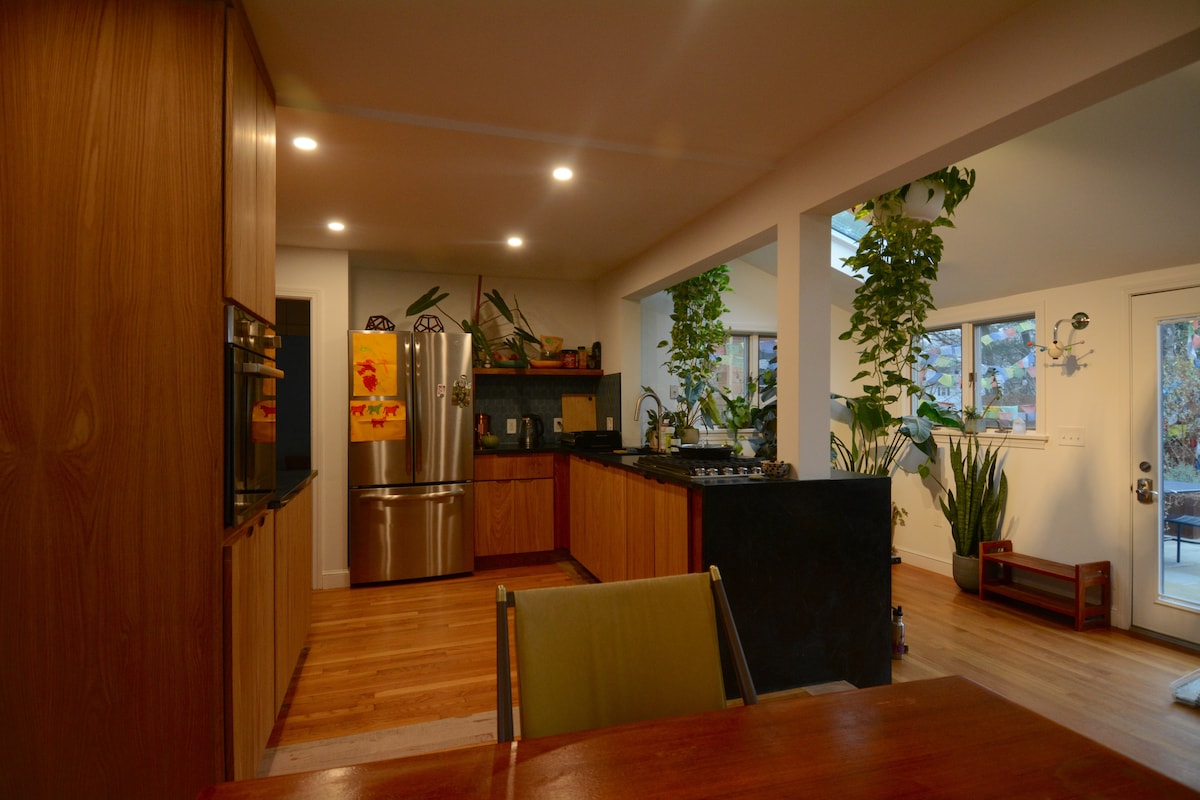 Oásis cheio de luz natural, plantas e arte em um bairro tranquilo a poucos minutos do centro de Boston. Perfeito para passear e desfrutar do melhor da cidade e das cidades vizinhas. Caminhe até Wrights Pond para nadar e caminhe pela Reserva Middlesex Fellsway. Cozinha de chefs totalmente equipada. Quintal privativo cercado por árvores. Acorde com pássaros cantando e relaxe após um longo dia de exploração enquanto assiste ao seu programa de TV favorito. Desfrute de um banho na banheira de imersão. 3 vagas de estacionamento, configuração de escritório e lavanderia