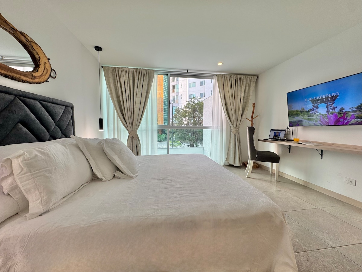 Desfrute de uma experiência elegante neste apartamento com localização central. Embora não tenhamos uma vaga de estacionamento dentro do conjunto, há várias opções a cerca de uma ou duas quadras de distância! - Cadeia de supermercado no shopping do conjunto. - Acesso fácil ao Parque del café, panaca, Salento, Filandia e todos os pontos de interesse do Quindio. - Frascos muito confortáveis - Água quente -Ventana Antiruido - Sala polivalente (escritório, quarto, academia)