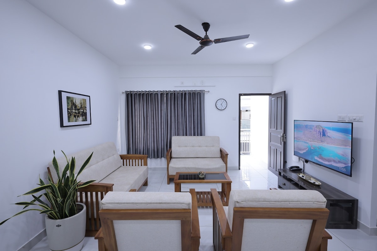 Relaxe com toda a família neste lugar tranquilo para ficar. O apartamento mais premium em Trivandrum com todas as comodidades modernas no apartamento. É uma unidade totalmente mobiliada com quartos com ar condicionado, cozinha completa, espaço de jantar, área de estar com sofá e TV. Estritamente proibido beber álcool ou fumar dentro do apartamento. Não são permitidos hóspedes externos depois das 22h.