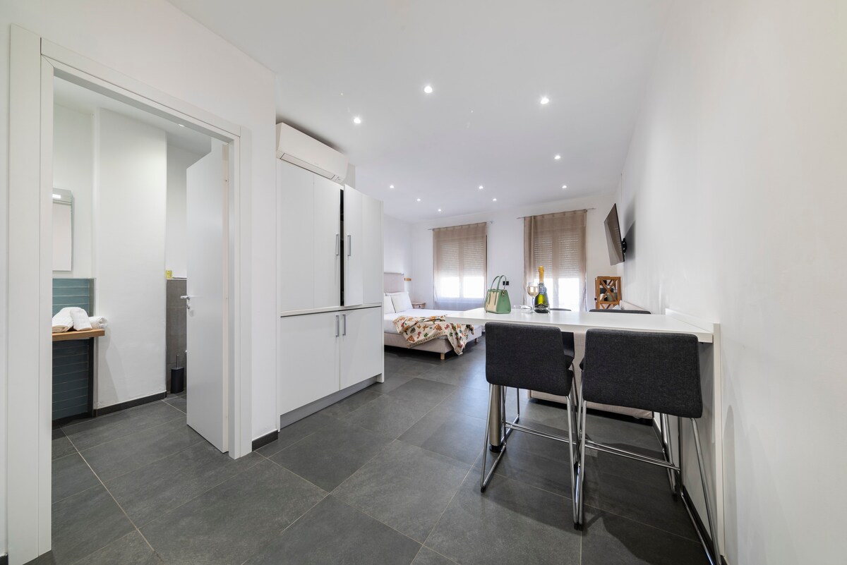O quarto Italia está localizado no segundo andar (sem elevador) é grande e espaçoso com uma cama de casal e duas camas de solteiro. Adequado para famílias, acomoda até 4 pessoas. Tem um banheiro privativo, mas não está localizado dentro do quarto, na verdade você tem que atravessar a sala comum para acessá-lo. Tem uma pequena varanda com vista para a Via XX Settembre, uma das principais ruas de pedestres da ilha. Ar condicionado independente (quente/frio) e TV LCD de 40 polegadas.