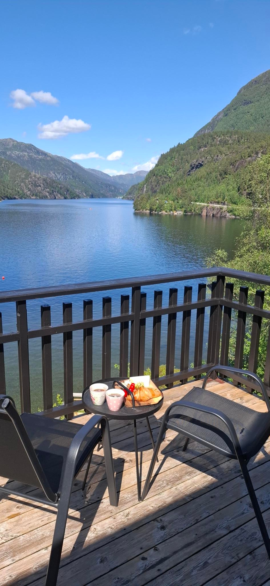 Fazenda e padaria à beira do fiorde, vista incrível do fiorde