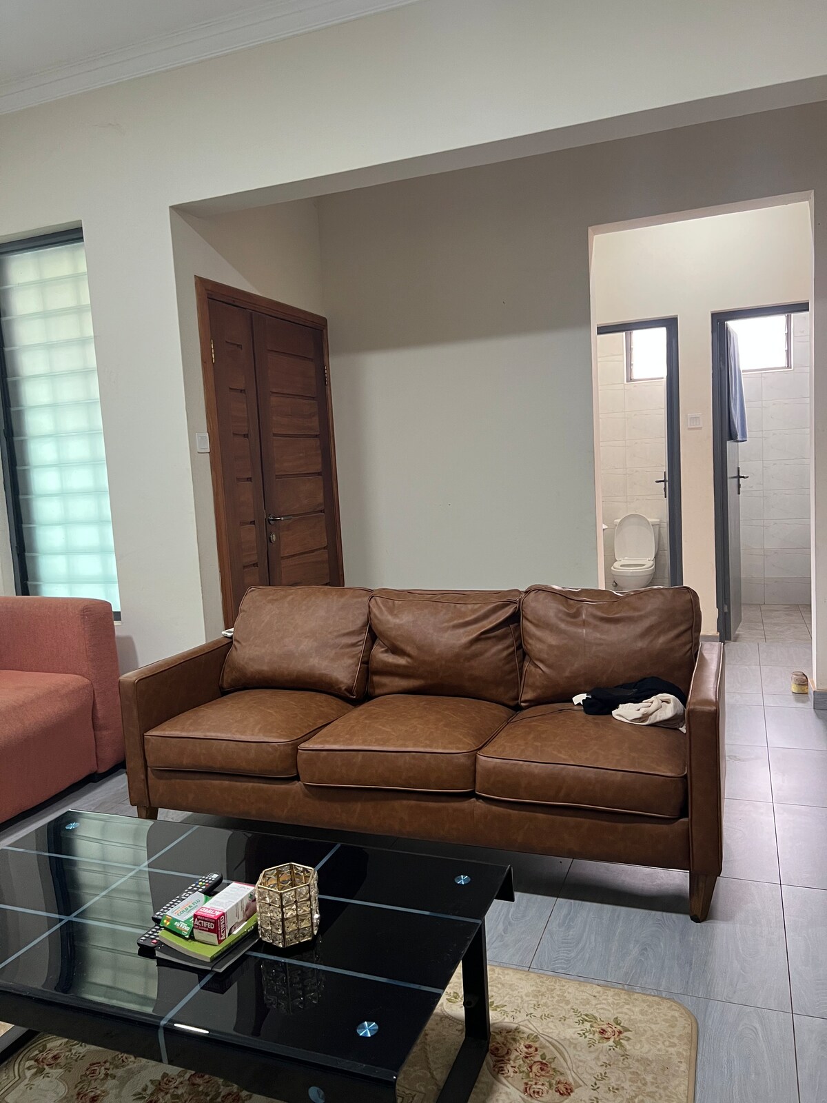 Desfrute de uma estadia confortável em nossa casa de 3 quartos com banheiro privativo, perfeitamente localizada fora dos portões da Communication Hills Estate em Tema West, Gana. Esta espaçosa casa oferece amplo espaço para toda a família, com uma grande área de estar, sala de jantar e uma cozinha bem equipada. A casa dispõe de um fogão ou lareira para um calor aconchegante, um fogão a gás/cooktop, chaleira elétrica e uma geladeira para todas as suas necessidades culinárias. A sala de jantar está completa com cadeiras de jantar, um rádio e um sofá, enquanto a sala de estar possui uma TV e área de estar. A casa também tem uma despensa, sala de secagem e sala de TV para relaxamento. O espaço ao ar livre é perfeito para entretenimento, com jardim, terraço e móveis ao ar livre. Os hóspedes podem desfrutar de um custo muito limitado de internet sem fio e o estacionamento está disponível em um lote/garagem seguro. A casa é acessível para cadeiras de rodas e tem acesso total para cadeiras de rodas. Crianças são bem-vindas e animais de estimação não são permitidos. A casa é profissionalmente limpa e desinfetada entre as estadias, e os hóspedes podem desfrutar de água quente, comodidades de passar roupa e produtos de higiene pessoal gratuitos. Roupas de cama e toalhas também são fornecidas. Esta acomodação é perfeita para famílias, viajantes de negócios e qualquer pessoa que procure uma estadia confortável e conveniente em Tema West/Accra. Desfrute de uma estadia relaxante e confortável em nossa casa de 3 quartos com banheiro privativo, lindamente decorada, idealmente situada fora dos portões da serena Communication Hills Estate em Tema West, Gana. Perfeito para famílias, viajantes de negócios ou qualquer pessoa que procure um lar tranquilo e conveniente longe de casa, esta residência espaçosa oferece todo o conforto e comodidades de que você precisa para uma estadia verdadeiramente agradável. Cada um dos três quartos tem seu próprio banheiro privativo, garantindo privacidade e conveniência para todos os hóspedes. O layout expansivo inclui uma sala de estar de tamanho generoso, uma área de jantar acolhedora e uma cozinha totalmente equipada, ideal para estadias curtas e prolongadas. A cozinha está equipada com um fogão a gás/cooktop, uma chaleira elétrica e uma geladeira para atender a todas as suas necessidades culinárias, enquanto um fogão ou lareira adiciona um ambiente acolhedor e acolhedor em noites mais frias. A sala de jantar é decorada com bom gosto com um conjunto de cadeiras de jantar, um sofá e um rádio, proporcionando um cenário perfeito para refeições e conversas. Na sala de estar, você encontrará uma confortável área de estar e uma TV, criando um ótimo espaço para relaxar depois de um dia agitado. Quartos adicionais, como uma despensa, uma sala de secagem e uma sala de TV separada, oferecem maior comodidade e flexibilidade para os hóspedes. Saia e você encontrará uma área externa bem conservada, perfeita para se divertir ou relaxar. Desfrute do jardim, de um terraço mobilado e de assentos ao ar livre, onde você pode aproveitar o sol ou desfrutar de brisas noturnas. Para as suas necessidades de conectividade, a Internet sem fio está disponível a um custo muito mínimo, e o estacionamento seguro é fornecido em um lote ou garagem. A acessibilidade é uma prioridade nesta acomodação. Ela é totalmente acessível para cadeiras de rodas, tornando-a uma opção confortável para hóspedes com necessidades de mobilidade. Famílias com crianças são mais do que bem-vindas, embora observemos gentilmente que animais de estimação não são permitidos. Para sua tranquilidade, a casa é profissionalmente limpa e desinfetada entre as estadias dos hóspedes. Você também terá acesso a comodidades essenciais, incluindo água quente, comodidades de passar roupa, produtos de higiene pessoal gratuitos, roupas de cama frescas e toalhas. Seja em uma visita a Tema West ou Accra a trabalho ou lazer, esta acomodação encantadora e bem equipada oferece o equilíbrio perfeito entre conforto, conveniência e tranquilidade.