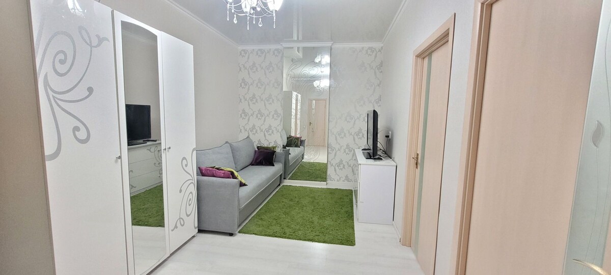 Apartamento aconchegante e limpo com um serviço de hotel no novo complexo residencial Asyl Mura. Todos os móveis e eletrodomésticos estão novos. A uma curta distância estão o centro comercial Khan Shatyr, o centro comercial Sarıarka, os centros médicos da RDTs, a cirurgia respiratória, o centro de mãe e infância, o teatro de ópera e balé. O horário de check-in é a partir das 14h; o horário de checkout é antes das 12h. Regras DA casa: o apartamento não é alugado para eventos, por hora, é proibido fumar e animais de estimação, bem como barulho das 23:00 às 08:00.