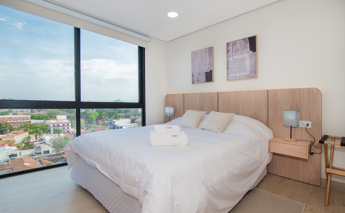 Localizado no novo centro corporativo de Assunção, este apartamento combina conforto, estilo e uma localização premium. A apenas 50 metros do Shopping del Sol e a 300 metros do World Trade Center, rodeado por cafés, restaurantes e espaços verdes. Tem dois quartos espaçosos, uma vista incrível e tudo o que você precisa para uma estadia perfeita, tanto para famílias quanto para viajantes de negócios.