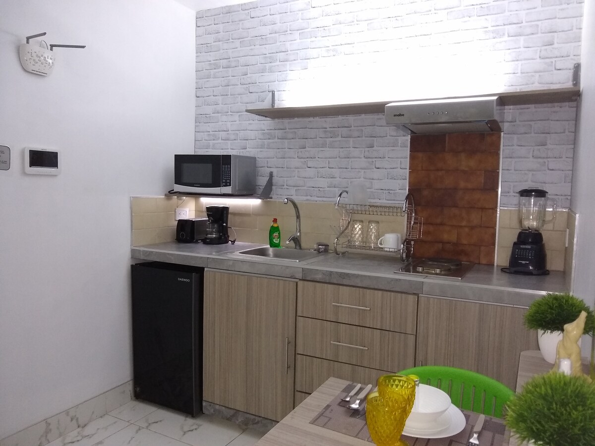 Bem-vindos ao Departamento Bugambilias! Um espaço aconchegante com todas as comodidades, ideal para viagens a trabalho ou descanso. Apartamento independente, não compartilhado. O quarto e a área da cozinha têm ar condicionado. Espaço para um carro. Localizado no 1º andar, o acesso é independente por escadas. Estamos dentro de um bairro com vigilância 24 horas, garantindo um ambiente seguro e tranquilo, livre de ruído de trânsito. Esperamos receber você em breve!