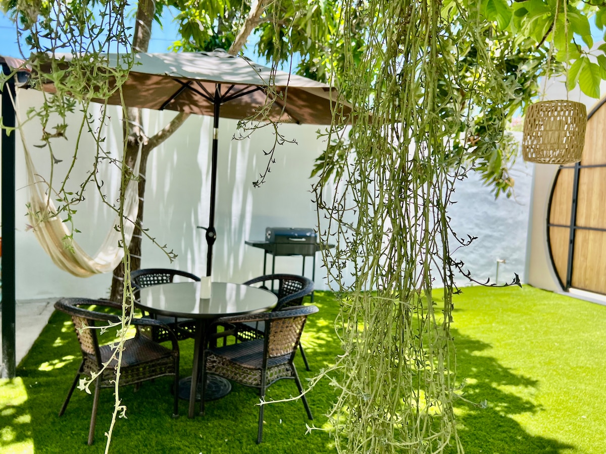 Esta casa na selva é diferente de qualquer outra. Vista espetacular de 360 graus para o mar e a selva, banheira privativa na cobertura sob as estrelas, cama king size sob tijolos abobadados feitos à mão e teto detalhado em mármore. O luxo espera por você em cada passo que você dá aqui. Você sentirá a reclusão da selva no El Oasis, mas fica a apenas 8 minutos a pé da praça da cidade e da praia. Desfrute da brisa e dos pássaros da selva da sua rede ou relaxe na piscina de água salgada com cascata e lounge.