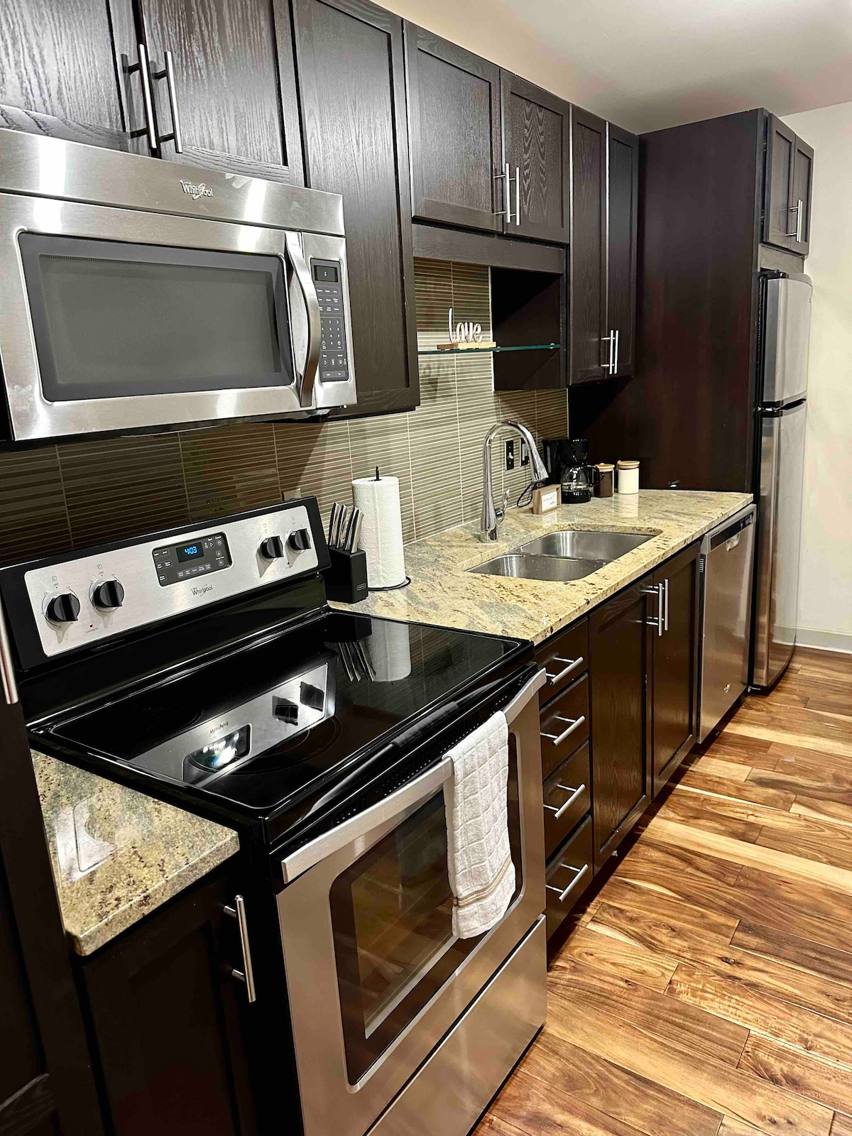 Where 1990s Tarantino grit meets slick 1920s luxe. This 5th-floor lookout isn't just a stay; it’s a movie scene. A high-contrast studio blending eclectic charm with custom concrete and graffiti edge. Level up on the PS5, throw down in the kitchen, or make business moves via fiber wifi and iMac. Retreat to a King bed with natural linens that sleep like sweet dreams. It’s the Top 1% experience—an artsy, curated, Boogjie hideaway perched above the Dallas hustle. Your action hero loft awaits. 🖤