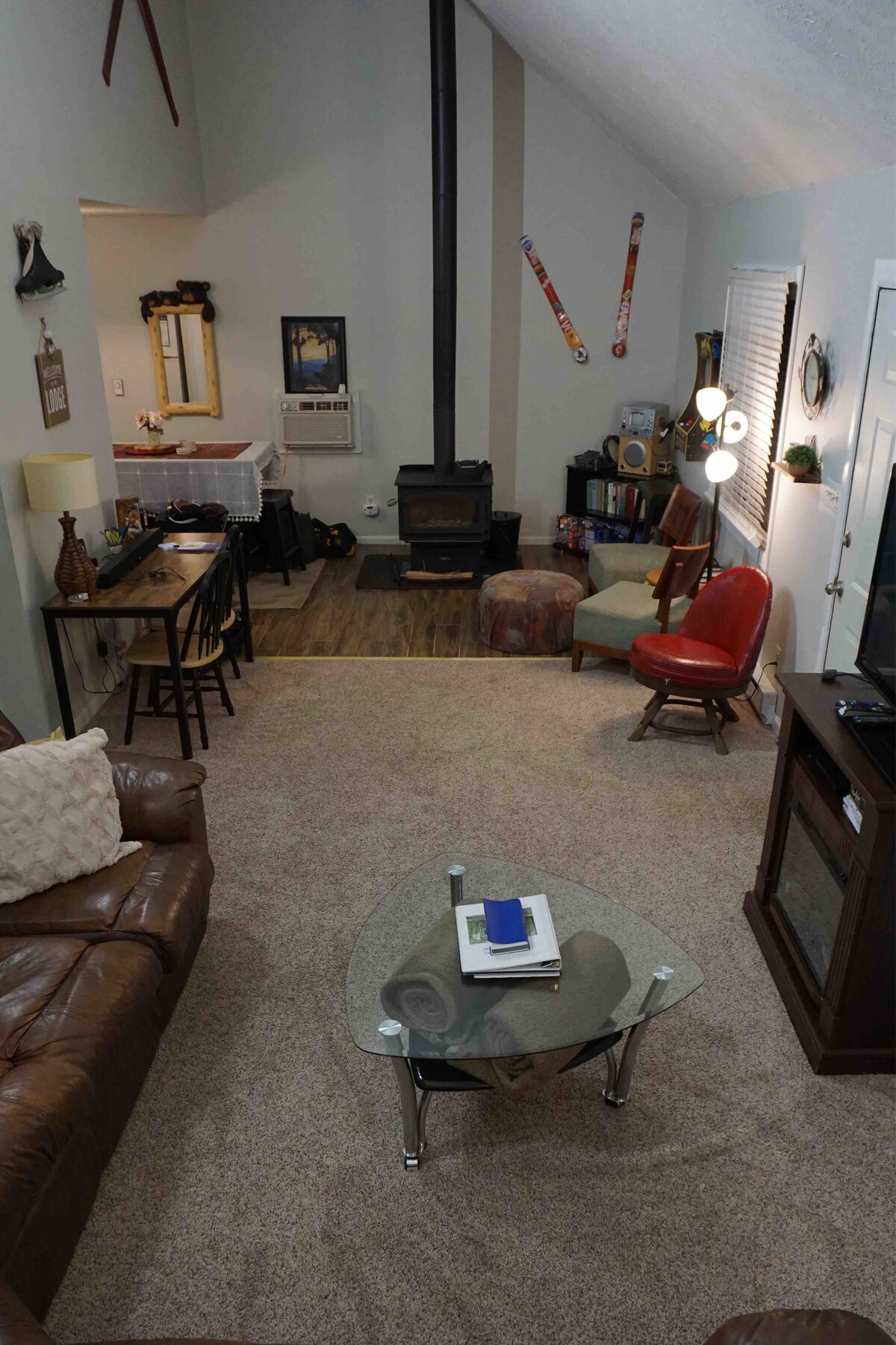 Faça uma escapada para nossa vila de 3 quartos/2 banheiros, perfeitamente localizada no Massanutten Resort, aninhada nas copas das árvores com vista para a colina de tubing e a poucos passos das pistas de esqui. Tetos abobadados, uma aconchegante lareira a lenha e um deck privativo com fogueira a propano criam a vibração perfeita da montanha. Os interiores atualizados combinam charme rústico com conforto moderno, além de um jogo de arcade para todas as idades. Ideal para aventuras de inverno, diversão de verão ou uma viagem tranquila.