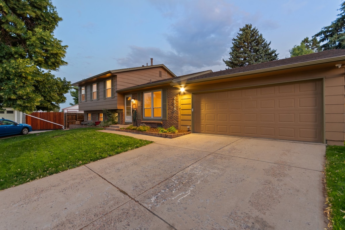 Casa espaçosa e elegante de 3 quartos em Seven Hills Apresentando: ✔ Netflix grátis, Amazon Prime Video Wi-Fi ✔ gratuito Banheiros ✔ totalmente equipados: toalhas de banho, xampu, condicionador, sabonete líquido para banho, secador de cabelo, ferro de passar. Cozinha ✔ totalmente equipada Estacionamento ✔ gratuito ✔ Lavanderia na suíte ✔ 10 minutos para o Southland Mall ✔ Perto de Cherry Creek, Aurora e Quincy Reservoir ✔ 20 minutos para o centro de Denver ou para o Aeroporto Internacional de Denver ✔ Minutos para mercearias, restaurantes, compras e I-25