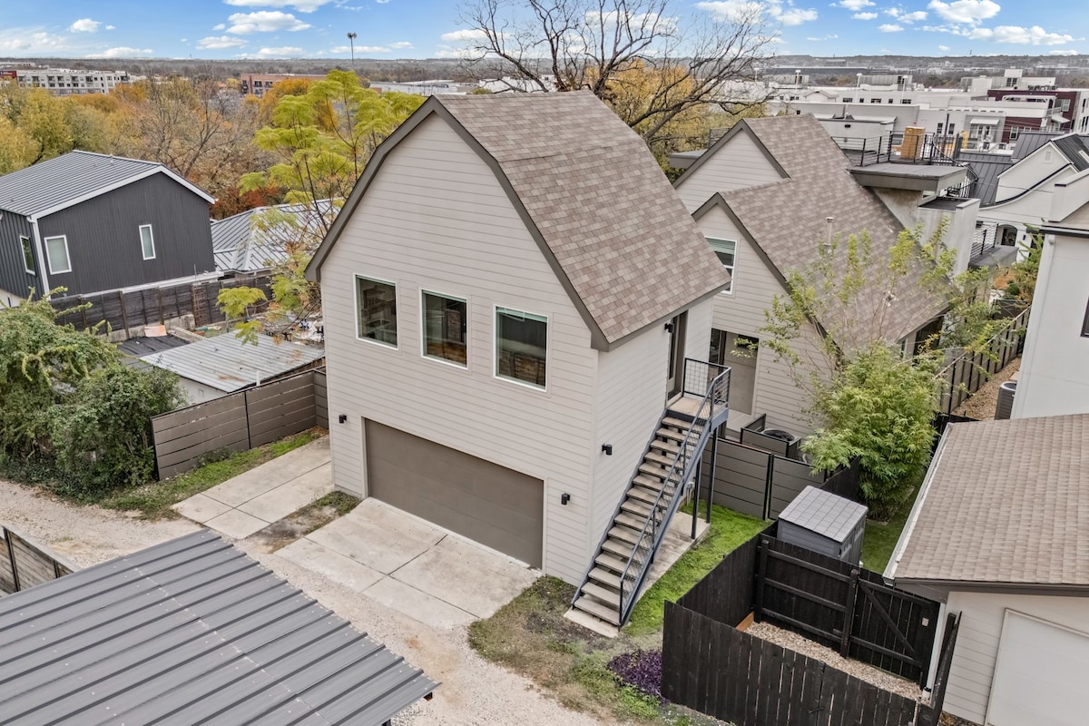 Descubra nossa unidade de canto de luxo, com mais de 165 avaliações brilhantes de 5 estrelas, bem no centro vibrante de Downtown Austin. Ao contrário do comum, nosso condomínio familiar promete uma experiência distinta, livre de taxas de limpeza irritantes e aluguéis corporativos impessoais. Mergulhe totalmente na autêntica vida local. A poucos passos dos bares e restaurantes da Rainey Street, desfrute da rica cultura de Austin do lado de fora da sua porta. De ACL a SXSW, locais de música ao vivo e museus - a aventura espera por você.