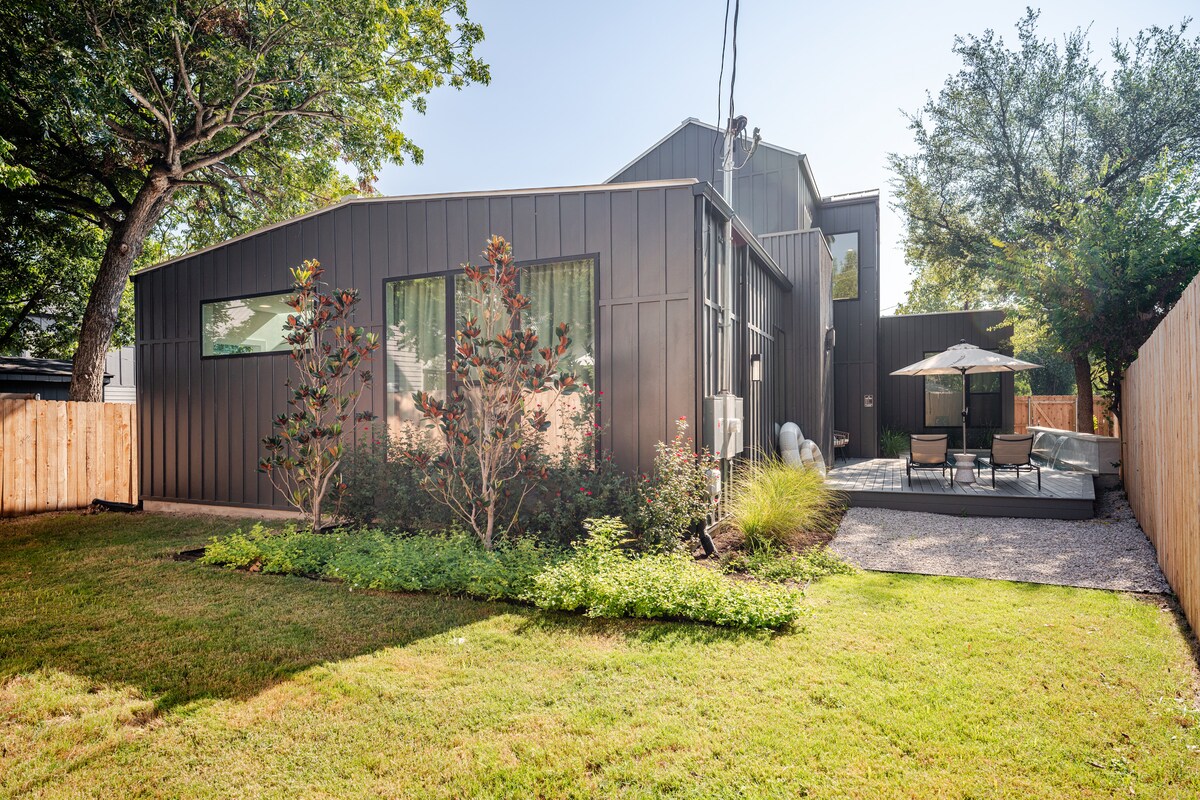 Bem-vindo ao Minimalist Oasis — um retiro espaçoso e com design avançado a poucos passos do Zilker Park e Barton Springs. Esta casa de 4 quartos/4 banheiros foi construída para conforto e privacidade, perfeita para escapadas, festivais ou viagens com amigos e familiares. Relaxe na banheira de hidromassagem privada, desfrute dos espaços abertos e do quintal gramado, ou caminhe até ótimos restaurantes e bares em minutos. Comodidades atenciosas, interiores elegantes e uma localização imbatível. Esta acomodação oferece o equilíbrio perfeito entre um retiro tranquilo e acesso privilegiado à cidade.