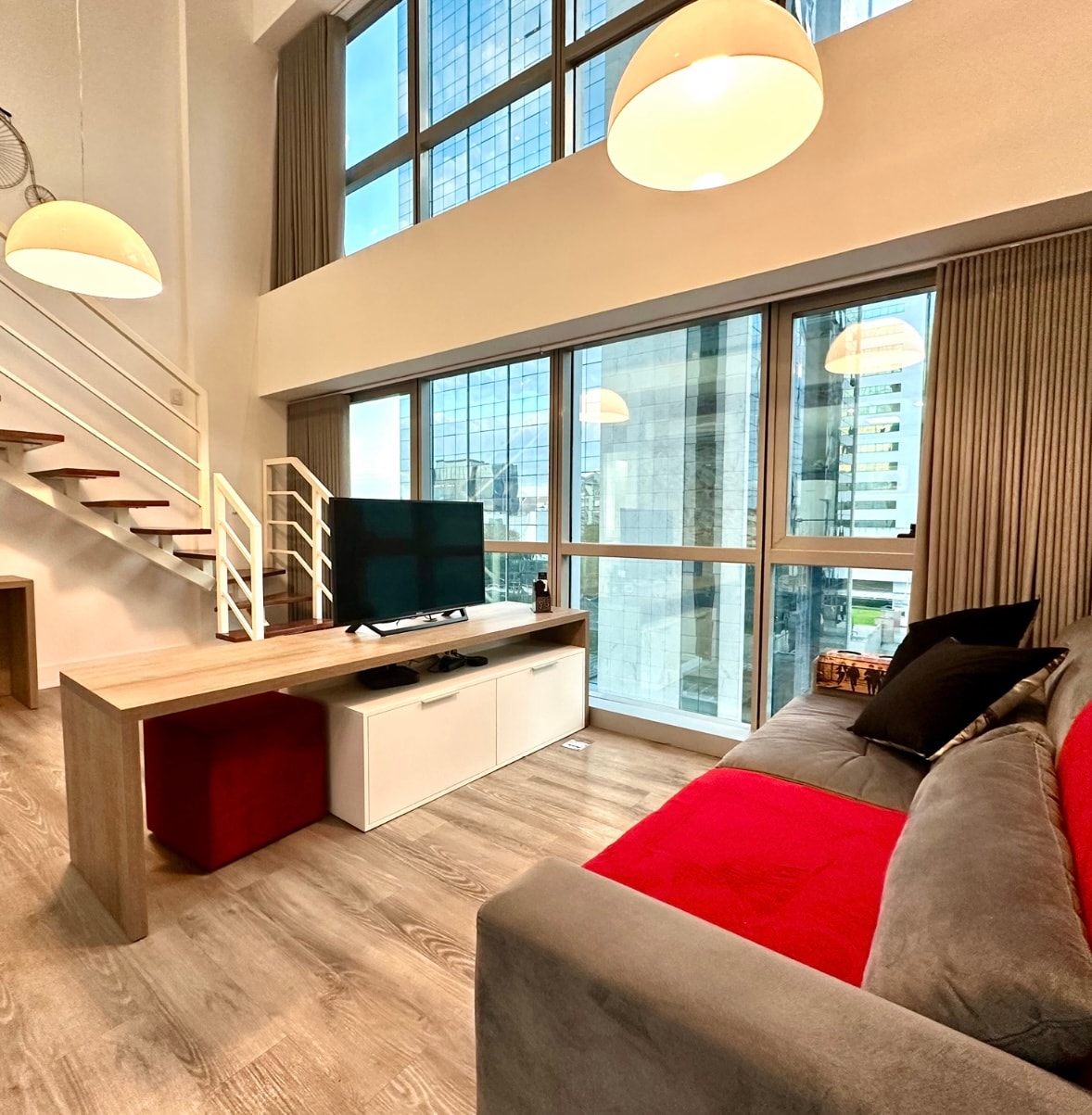Viva uma experiência única neste estúdio acolhedor e elegante, projetado com atenção aos detalhes para oferecer conforto, funcionalidade e muito estilo. O ap azul planejado é um diferencial exclusivo, com iluminação suave e decoração pensada para relaxar, móvel inteligente e versátil que se transforma em mesa de jantar ou apoio para cozinhar — perfeito para quem valoriza funcionalidade. Piano digital disponível para relaxar, praticar ou se inspirar. Smart TV, Wi-Fi.