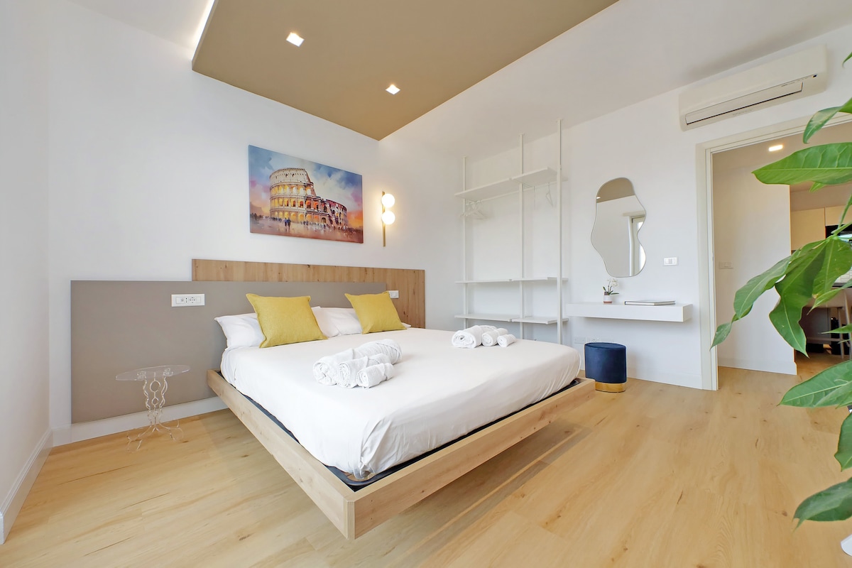 Apartamento espaçoso e recém-reformado em prédio histórico localizado no 4º andar (com elevador). Sala de estar/jantar, 3 varandas; 2 quartos grandes com 4 camas, banheiro e cozinha completa com forno, máquina de lavar roupa, máquina de lavar louça, micro-ondas. Piso e parquet originais. Ar-condicionado, Wi-Fi de fibra de alta velocidade e TV. Distância a pé do Coliseu, Fórum Romano, Circus Maximus, restaurantes, metrô para o aeroporto e Vaticano. Berço disponível mediante solicitação por uma taxa extra.