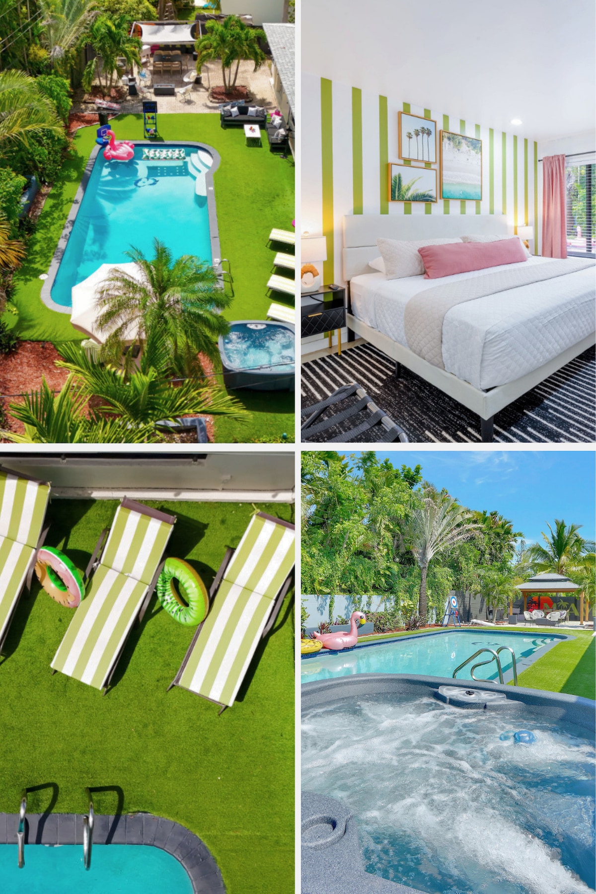 Bem-vindo ao nosso moderno oásis tropical, onde a conveniência urbana encontra comodidades semelhantes a um resort. Esta casa pode acomodar confortavelmente 9 pessoas, com 3 quartos, 2 banheiros, uma sala de jogos colorida, sala de estar convidativa e uma cozinha totalmente equipada. Saia para o amplo quintal, completo com um campo de mini golfe, banheira de hidromassagem e um mirante encantador com uma churrasqueira. É o retiro perfeito para entretenimento sem fim e memórias inesquecíveis, e a poucos passos de inúmeras atrações SoFlo.