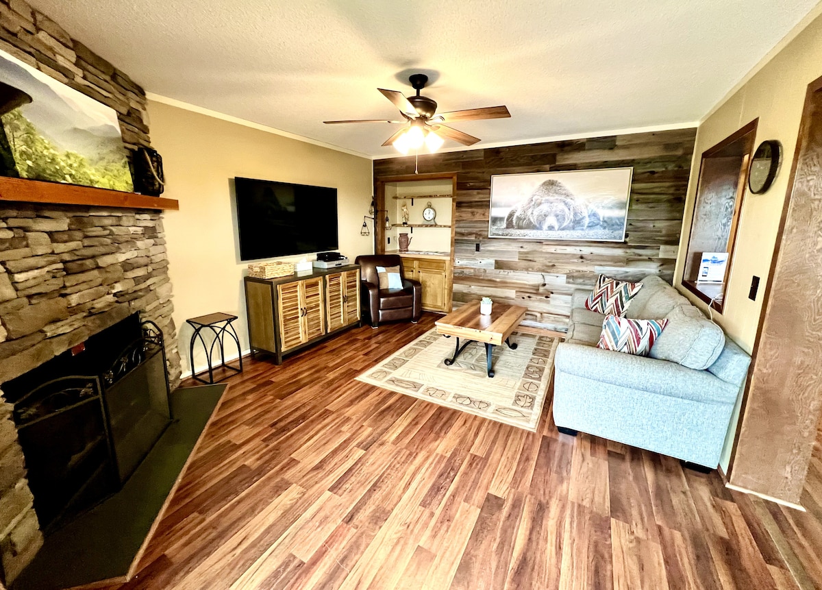 Chalet #1 is part of White Wolf Lodge. Relax and unwind on the comfy oversized couches while you sip on coffee or a glass of wine and enjoy the spectacular mountain views. Our units do have air conditioning for those who like it extra cool in the summertime. Beech mountain rarely hits 75 degrees. Kitchen is newly updated with granite countertops and fresh paint. Free on-site parking. Stairs are required to access. Enjoy the convenience of Holy Smokes BBQ located in White Wolf Lodge.