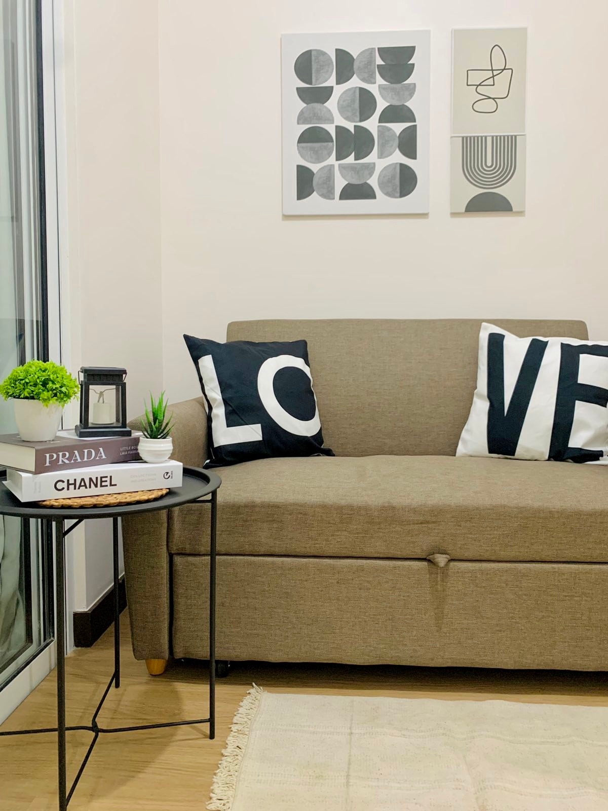 Bem-vindo ao seu sereno oásis de inspiração boho! Esta unidade de condomínio de 29 m² lindamente projetada apresenta um tema calmante de sálvia verde, perfeito para relaxamento e rejuvenescimento. Desfrute de noites aconchegantes com Netflix no sofá de pelúcia ou prepare refeições deliciosas na cozinha totalmente equipada, completa com todos os utensílios de cozinha e jantar. Convenientemente localizado perto do Ayala Mall Cloverleaf, Balintawak Market, Edsa e Skyway.