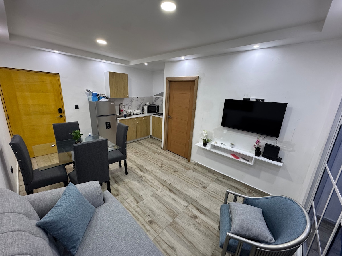 Apartamento novo de 2 quartos com todos os eletrodomésticos e móveis. Espaço para até 4 pessoas, com 2 camas queen size. Espaço de estacionamento disponível para um veículo. Muitas comodidades próximas, como parques, praia, centro de Bani, compras, boates e muito mais. Apartamento de dois quartos com tudo incluído. O espaço é para 4 pessoas com dois quartos com cama queen e ar-condicionado. Estacionamento fechado para um carro. Áreas para desfrutar como parques, praia, o centro de Bani, lojas, discotecas e muito mais.