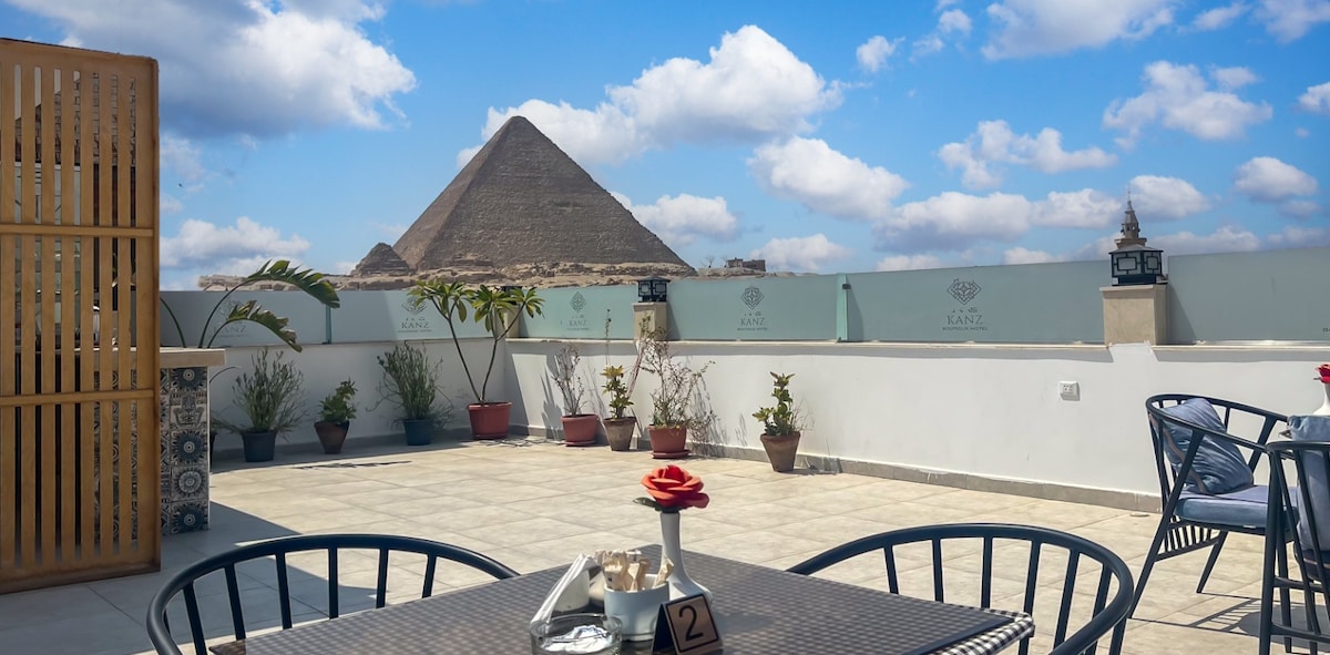 Desfrute de uma experiência luxuosa ao ficar neste lugar único Um lugar tranquilo e limpo com vista para as pirâmides e há viagens para atrações turísticas
