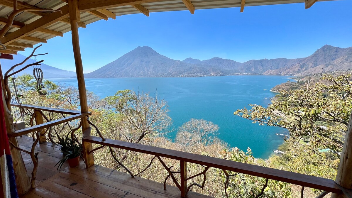 Bem-vindo ao seu refúgio à beira do lago. Nossa casa de campo combina simplicidade rústica com conforto aconchegante, com janelas panorâmicas com vistas pitorescas do Lago Atitlan. Desfrute de espaços interiores e exteriores e do nosso clima temperado. Ao lado de uma reserva natural intocada, nossa casa oferece uma escapada tranquila com acesso direto ao lago. Nade na água cristalina — é o melhor local do Lago Atitlan! Ideal para tranquilidade ou uma escapada romântica, nossa casa de campo à beira do lago é o refúgio perfeito para relaxar e recarregar as energias.