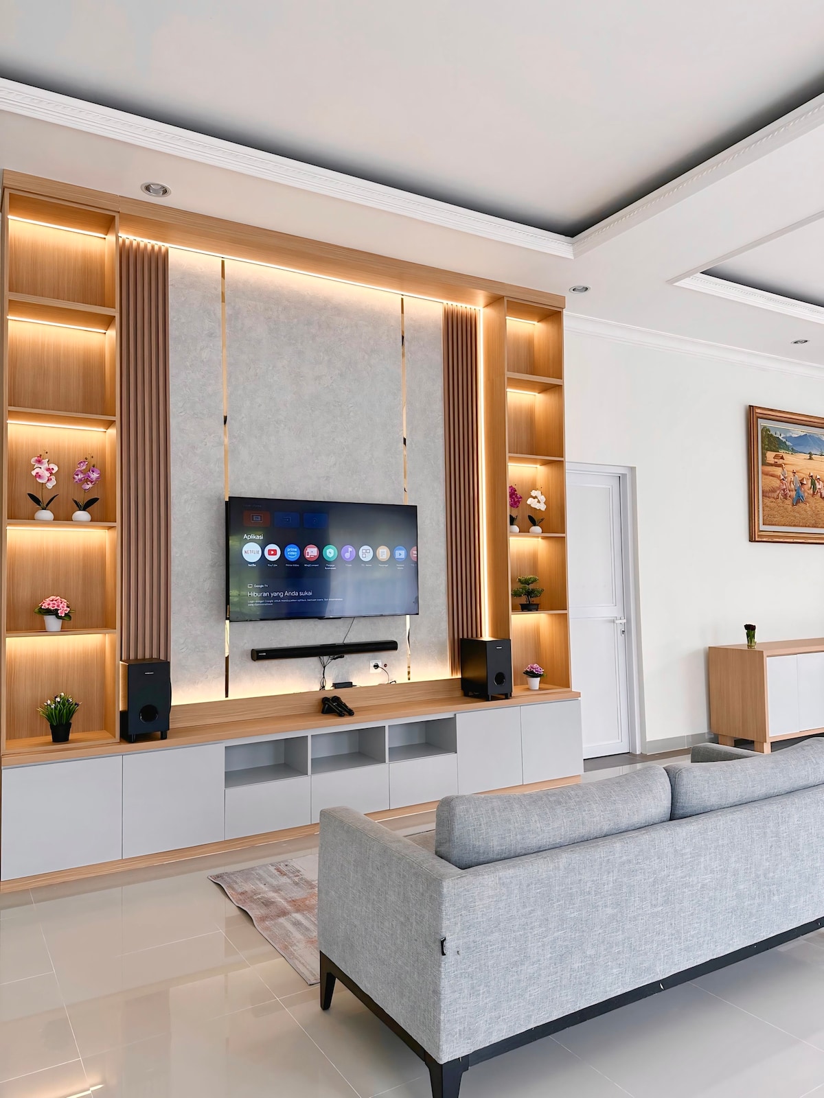 Localizado na cidade de Sentul, para uma pequena família, este lugar é um fim de semana perfeito para relaxar. Para as pessoas que têm que trabalhar em casa, deixe este lugar ser, com um Wi-Fi rápido, um quarto privativo com uma escrivaninha, uma varanda espaçosa e um sofá-cama. Você terá outra varanda espaçosa em seu próprio quarto principal. Também usamos o Google Nest, uma Smart TV, lâmpadas inteligentes, uma fechadura automática e 3 CFTVs para mantê-lo em segurança. Você terá seu próprio zelador (morando separadamente), caso precise de algo.