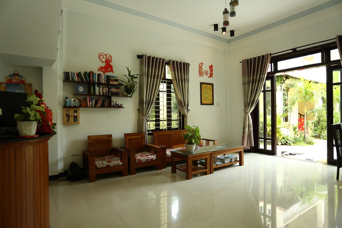 Welcome to our traditional house located in the main road from Da nang and Hoi An. The property includes one relaxing living room, two well established kitchen and 10 well-equipped comfy bedrooms and a big book shelves. The front is a delightful garden space giving a fresh atmosphere. The back yard has a beautiful big pool, big garden and a terrace . Hoi An ancient town and An bang beach are 15mins away on a bicycle. Danang International Airport is 25km away.
