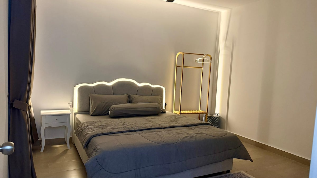 Apartamento de serviço minimalista de 3 quartos - ideal para famílias, amigos ou viajantes de negócios que buscam conforto e conveniência. Acomoda até 5 hóspedes com 3 quartos aconchegantes, 2 banheiros. 🛏️ 3 quartos e 2 banheiros ❄️ Conforto com ar-condicionado 📺 Netflix + Wi-Fi de alta velocidade 🏊 Piscina para relaxamento 🚘 1 estacionamento seguro incluído 🔑 Self check-in sem complicações Fique no coração da cidade com fácil acesso a restaurantes, lojas e atrações locais. Um refúgio seguro e conforto caseiro para sua viagem.