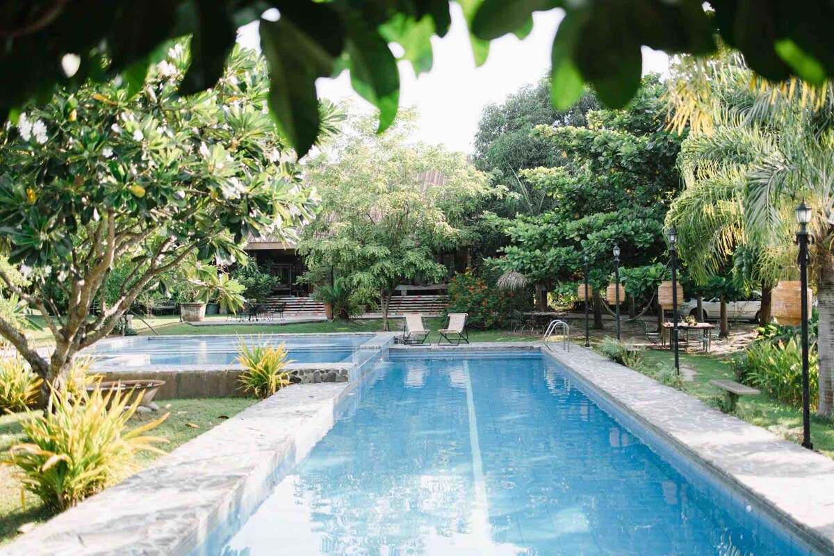 Relaxe com toda a família neste lugar tranquilo para ficar. Um resort privado inspirado na natureza com um ambiente relaxante que é perfeito para suas famílias, amigos e animais de estimação. Desfrute de suas acomodações confortáveis, piscina, utensílios de cozinha completos e utensílios de cozinha. Você pode desfrutar desta propriedade de 850 m ² com suas comodidades como karaokê, bilhar, dardos, mini palco com nossa área de eventos temática de bambu. Animais de estimação também são bem-vindos!