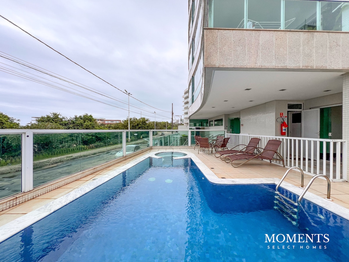 Apê 15m da praia c/garagem, piscina, ar cond, wifi