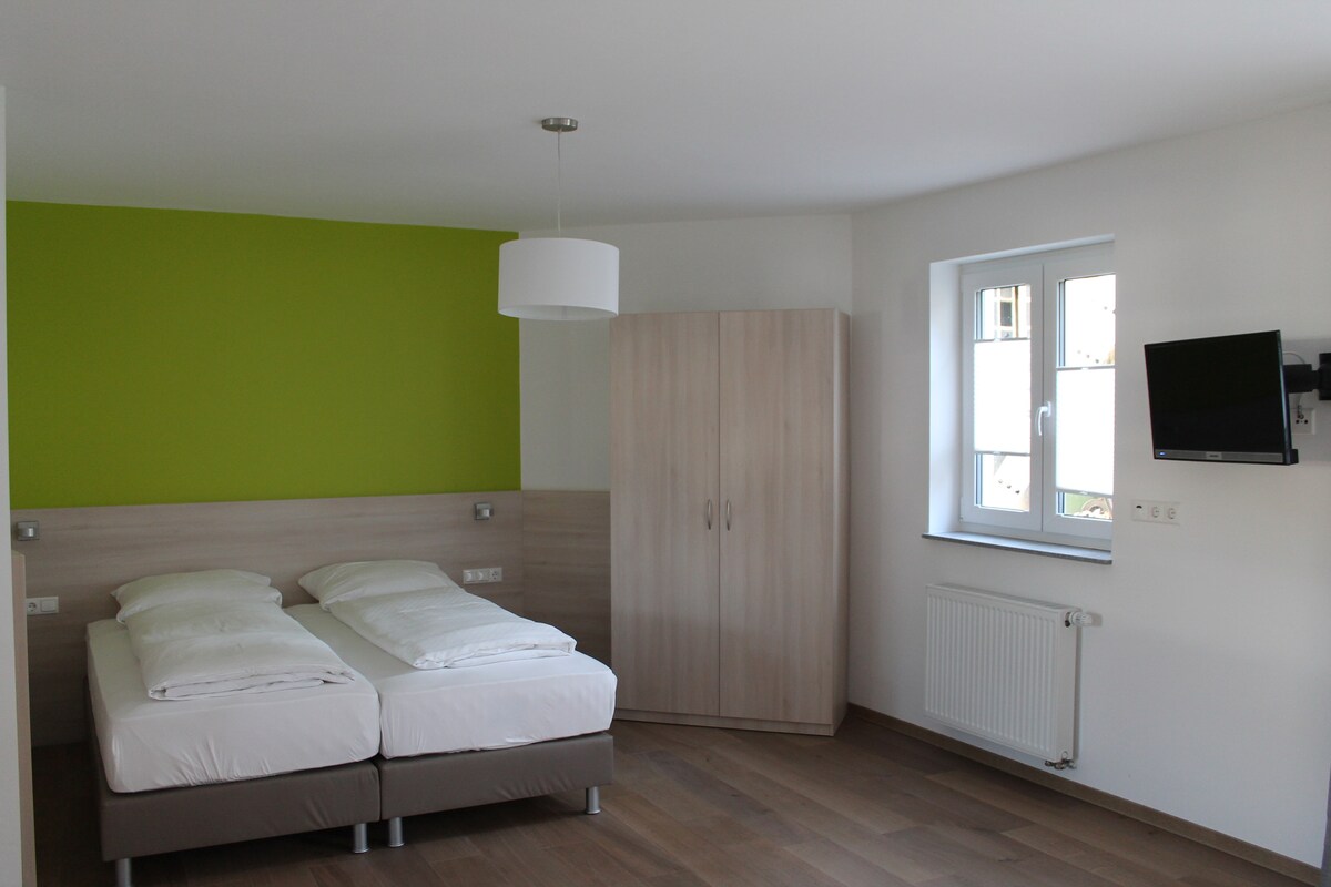 Em 38 m ², você encontra um pequeno apartamento moderno funcionalmente mobiliado com vista especial para a acessibilidade. A cama tem uma estrutura de cuidado e pode ser ajustada eletricamente em altura. O banheiro é de acesso para cadeira de rodas. O apartamento pode ser alcançado no segundo andar por um elevador. A cama tem uma largura de 140 cm. O sofá no apartamento é extensível e pode ser usado como uma segunda cama - com uma largura de 120 cm.