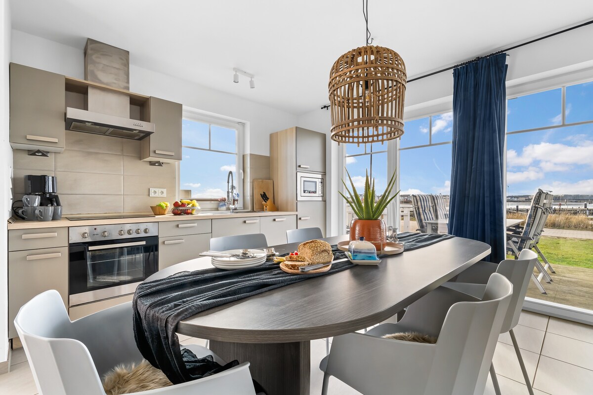 A casa de praia de três andares tem mais do que seu nome, pois fica realmente bem na praia/ mar. Uma localização única no resort do Mar Báltico de Olpenitz. Além disso, há um grande terraço no telhado com vista para a água. A banheira de hidromassagem e a sauna (com vista para o Mar Báltico/praia) são ótimas para relaxar. A lareira na sala de estar e o aquecimento do piso inferior proporcionam calor e aconchego nos dias de frio.