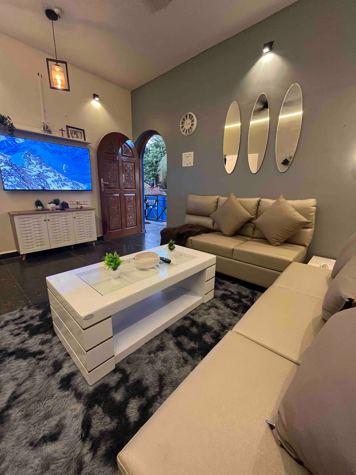 Piscina ☆ privativa na sua varanda ☆ Localizado ao lado de todas as principais praias do norte de Goa Praia de☆ Calangute 6 minutos 🛵 Praia de☆ Candolim 13 minutos Praia de☆ Vagator 25 minutos Praia de☆ Anjuna 25 minutos Acesse ⇒ facilmente ambos os aeroportos Bairro ⇒ tranquilo ⇒ Perfeito para WFH. Inclui uma mesa e Wi-Fi de fibra ⇒ Amplo espaço de estacionamento para carros e bicicletas ⇒ Acomoda 4 adultos Mobiliário de⇒ alta qualidade, talheres franceses, 1 cama king size e 1 sofá-cama queen size Smart TV de⇒ 55”, PlayStation e alto-falantes Marshall