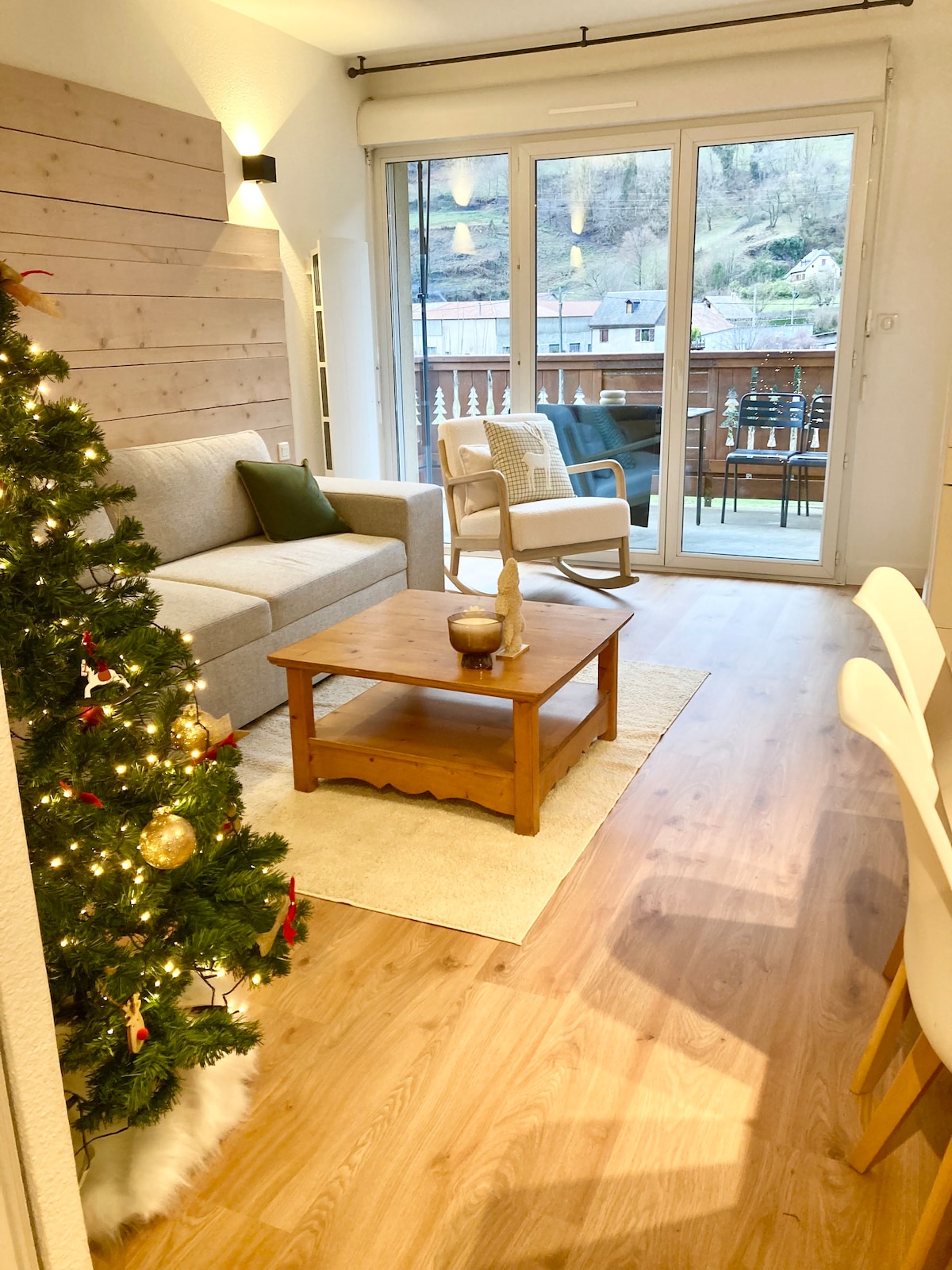 Apartamento de 30m2 em residência segura, a residência do Parque Termal, a 2 min das Termas e a 7 min das Gôndolas Caminhadas. Sala de estar / sala de estar com 140 sofás, kitchenette equipada, quarto separado com 140 camas, área de dormir com 1 cama, chuveiro, vaso sanitário separado, grande varanda com vista para a montanha. 3º andar com elevador. Adega fechada na varanda. Lugar de estacionamento privativo. ● Lençóis, toalhas de banho e toalhas de prato NÃO FORNECIDOS.