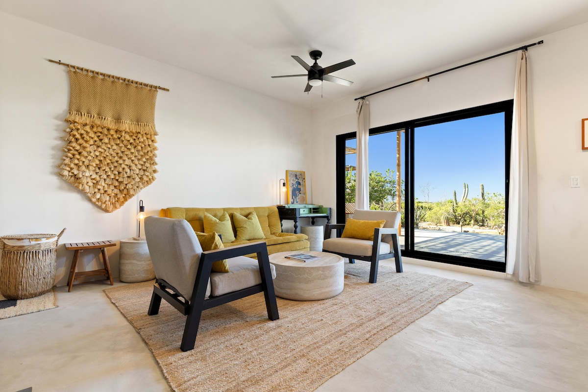 Peaceful, private, and solar-powered, Solita Casita is a ground-floor studio surrounded by desert landscape and ocean breezes. It’s the only structure on the property, offering a quiet, spacious feel with beautiful gardens and wide-open views. Enjoy slow mornings outside, sunset on the rooftop, and star-filled skies at night. Perfect for couples or small families who want to disconnect and relax, while still being a short drive to Cerritos Beach, surf breaks, restaurants, and shops.