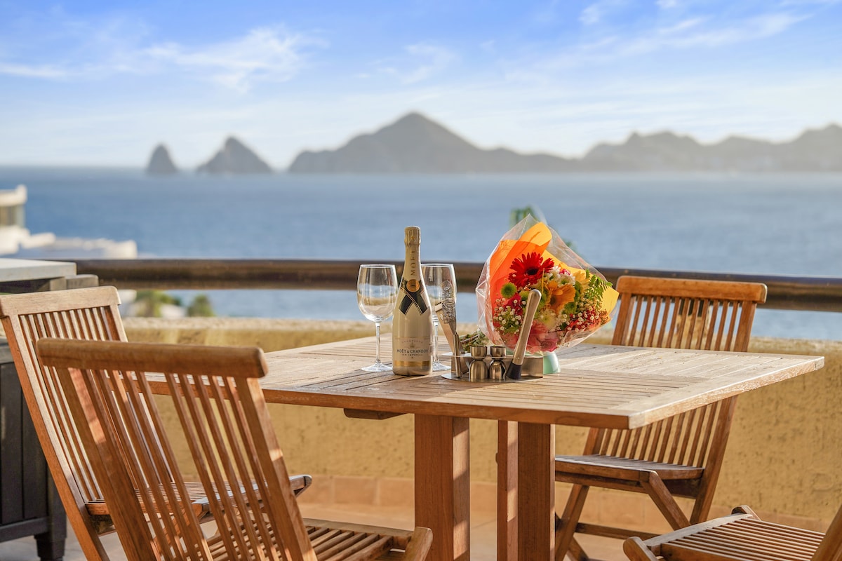 Apartamento de luxo em Cabo San Lucas com a melhor vista para o Arco!! A propriedade inclui 2 quartos, 2,5 banheiros, uma área de estar aberta com um belo sofá seccional e uma grande TV; mesa de jantar, cozinha totalmente equipada e um terraço acolhedor com vista para o mar e belos móveis ao ar livre. O complexo oferece 3 piscinas, quadra de tênis e academia. A poucos minutos da maravilhosa praia El Medano em Cabo San Lucas. Definitivamente o melhor lugar para ficar em Cabo San Lucas.